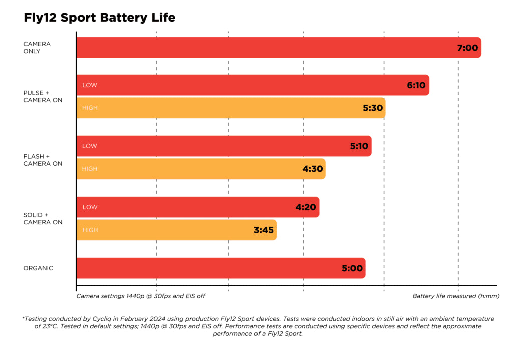Midweek commute, or chasing some KOM’s, the Fly12 Sport is your companion on the road. With up to 7 hours of continuous recording in camera only mode the Fly12 Sport lasts as long as you do!