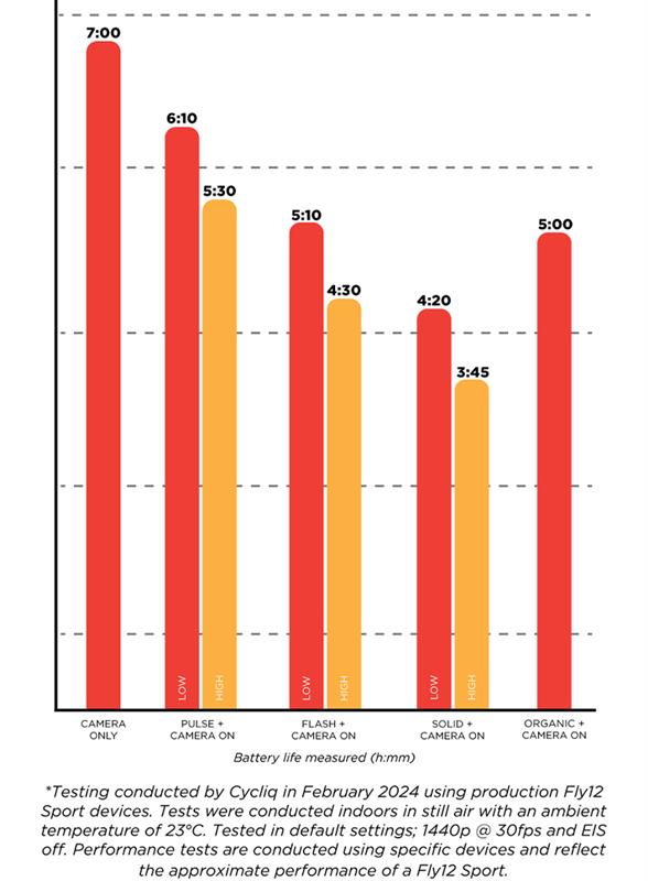 Midweek commute, or chasing some KOM’s, the Fly12 Sport is your companion on the road. With up to 7 hours of continuous recording in camera only mode the Fly12 Sport lasts as long as you do!